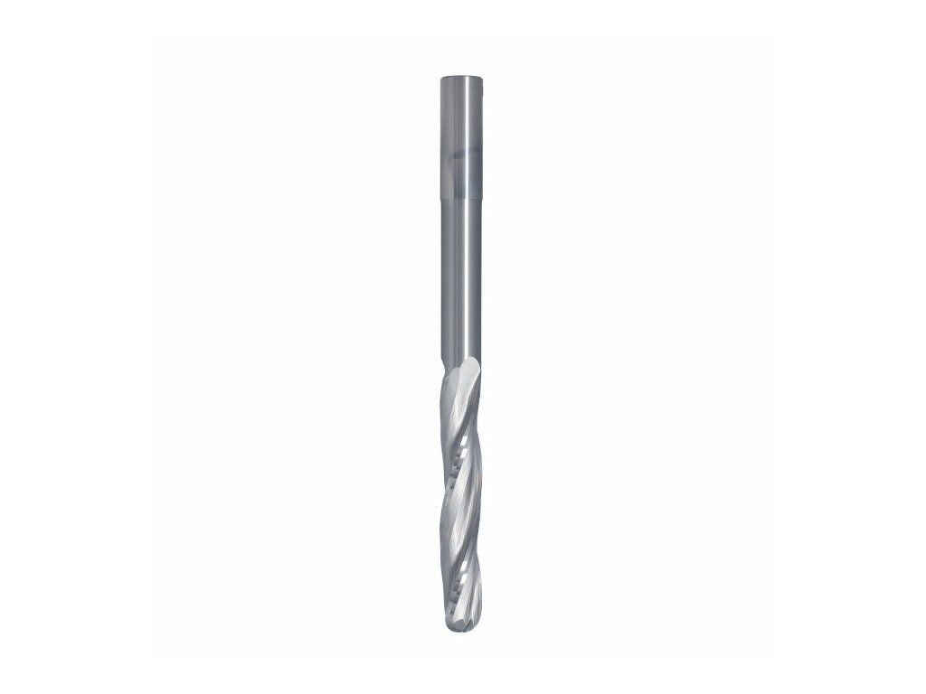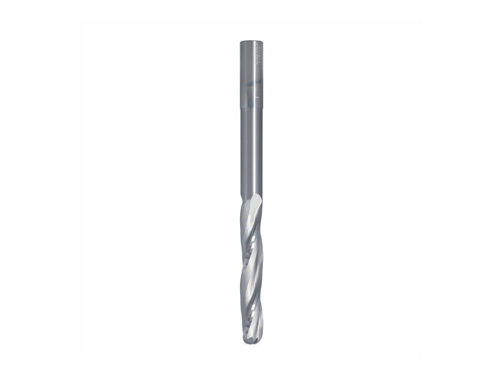 Leštěná spirála minimalizuje ulpívání materiálu a zajišťuje plynulý odvod třísek, což výrazně zvyšuje stabilitu a výkon nástroje při obrábění. Prodloužené tělo se sníženým hrdlem umožňuje hlubší frézování a zvyšuje flexibilitu při obrábění složitých tvarů. Kulové zakončení (round nose) je navíc ideální pro 3D aplikace a jemné tvarování.