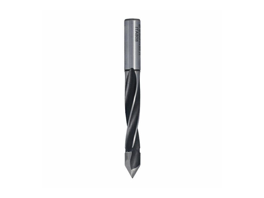 HW hlava s přesně vyváženým středovým hrotem a dvěma břity (Z2) je klíčovým prvkem, který minimalizuje vibrace a umožňuje precizní a čisté vrtání. Dvě precizně broušené břity zajišťují ostří s vynikající ostrostí, což vede k čistým a hladkým otvorům s minimálním rozštěpením materiálu. Čtyři spirálové drážky jsou navrženy tak, aby efektivně odváděly třísky a udržovaly pracovní plochu čistou, což zvyšuje produktivitu a zlepšuje kvalitu vrtání.