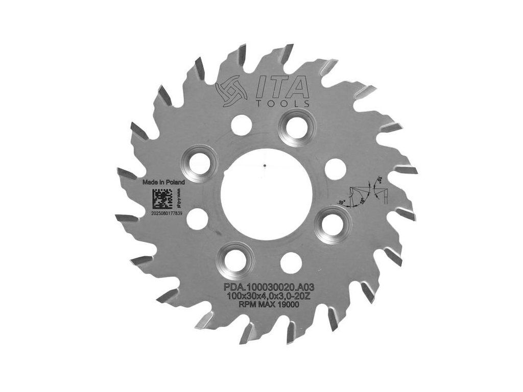ITA PDA - Tvrdokovový pilový kotouč pro drážkování na CNC (D=100;F=30;Z=20;K/P=4,00/3; )